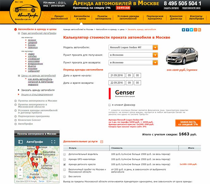 В АрендаАвто-блш предлагается прокат автомобиля недорого.«Рено Логан» на сутки обошелся нам в 1 520 рублей (без учета скидки для клиента Genser), а это очень дешево для авто напрокат в Балашихе.
